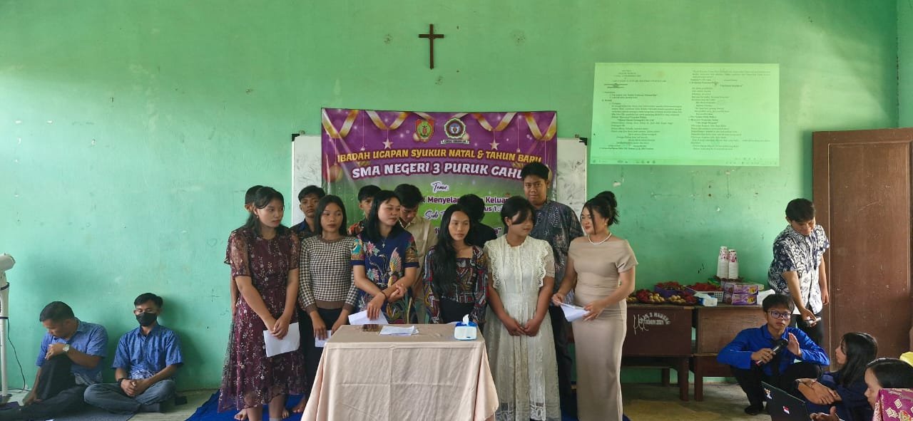 SMAN 3 Puruk Cahu memilih tema " Allah Hadir untuk Menyelamatkan Keluarga" Tujuan dari perayaan Natal tahun ini adalah untuk menjalin kerukunan dalam keberagaman suku dan agama di SMAN 3 Puruk Cahu. Perayaan ini disambut dengan antusias oleh siswa dan guru beragama Kristen. Serta perayaan ini dipimpin langsung oleh Pdt. Roliani yang menjadi pengkhotbah dalam acara natal ini.