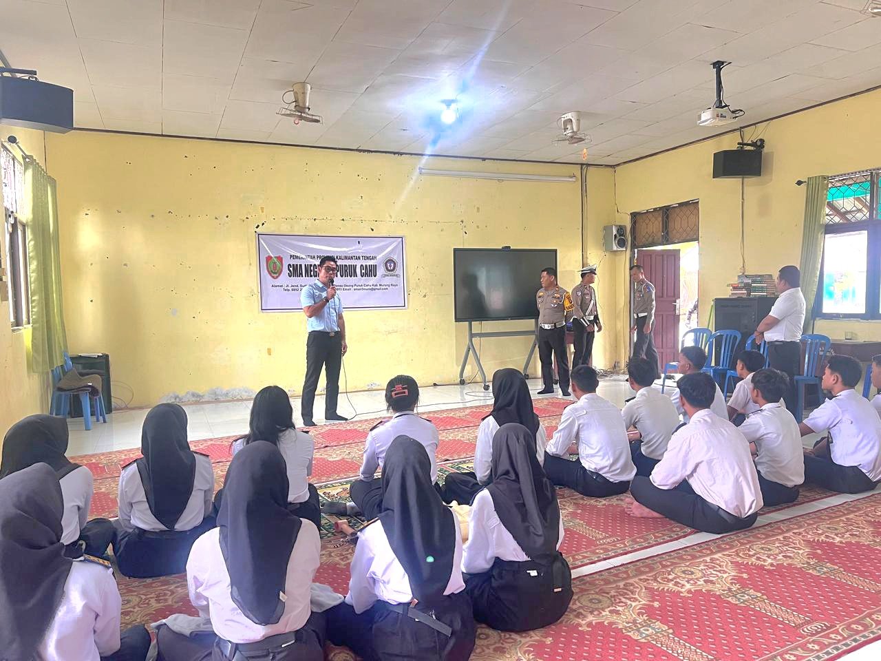 Rabu, 04 Februari 2026 SMA Negeri 3 Puruk Cahu melaksanakan Sosialisasi  dengan tema " OPS Keselamatan Telabang" Oleh Polantas Polres Murung Raya yang diikuti oleh peserta didik PKS (Petugas Keamanan Sekolah) SMA Negeri 3 Puruk Cahu.